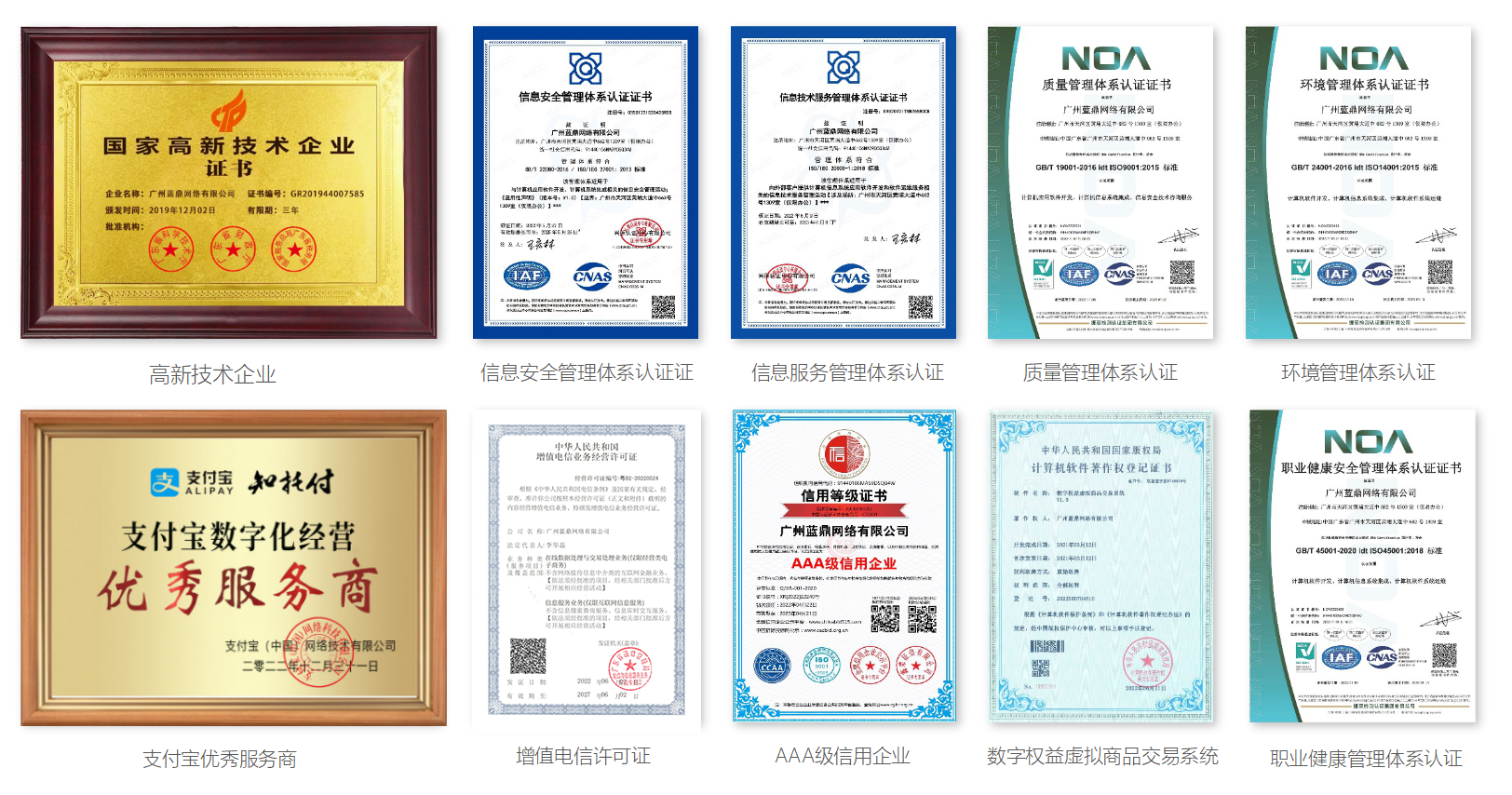 蓝鼎网络是国家高新科技企业、AAA级信用企业,目前已通过ISO27001信息安全管理体系、ISO20000信息服务管理体系、ISO9000质量管理体系、计算机等级三保认证,增值电信许可证等