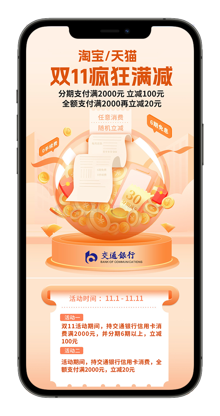 交通银行淘宝双11满减活动